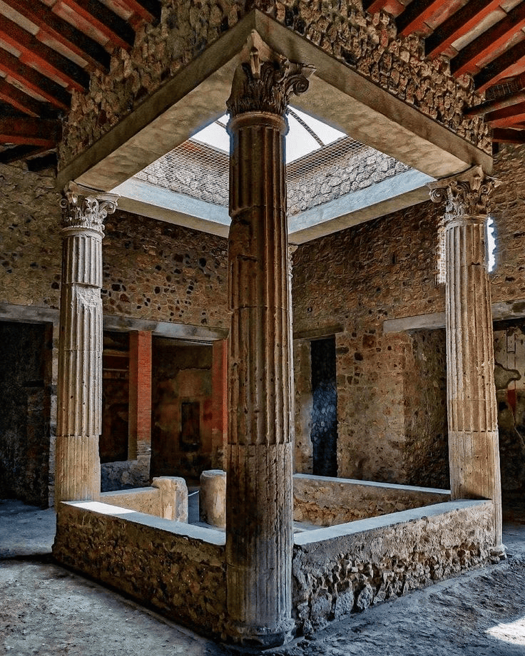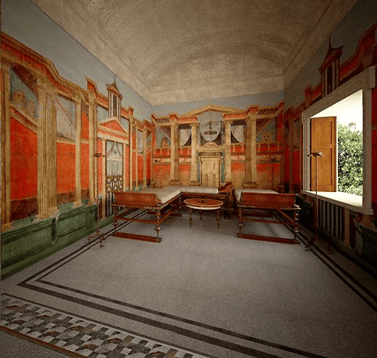 中院的中间是花园、柱廊,柱廊边围绕着主人们的卧室、餐厅和书房。
