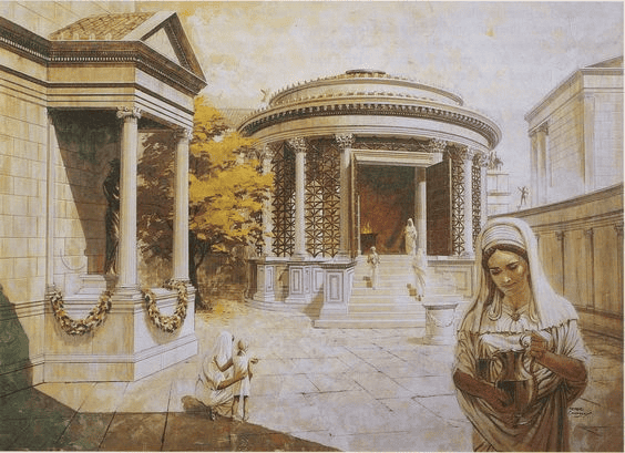 后来努马建立了维斯塔神殿,并将他遇到厄革里亚那个地方的山泉交由贞女照管,这是维斯塔神殿的专用圣泉。
